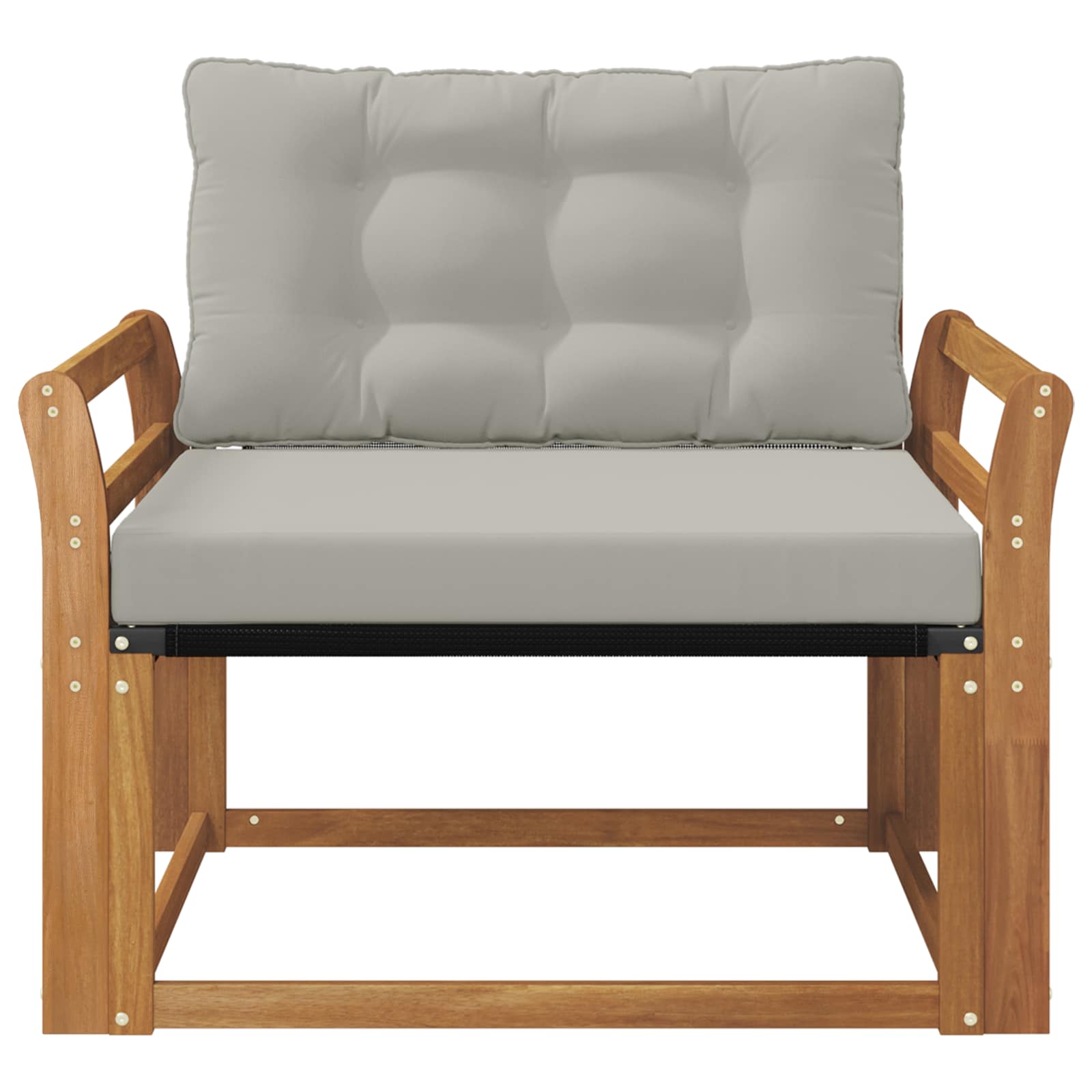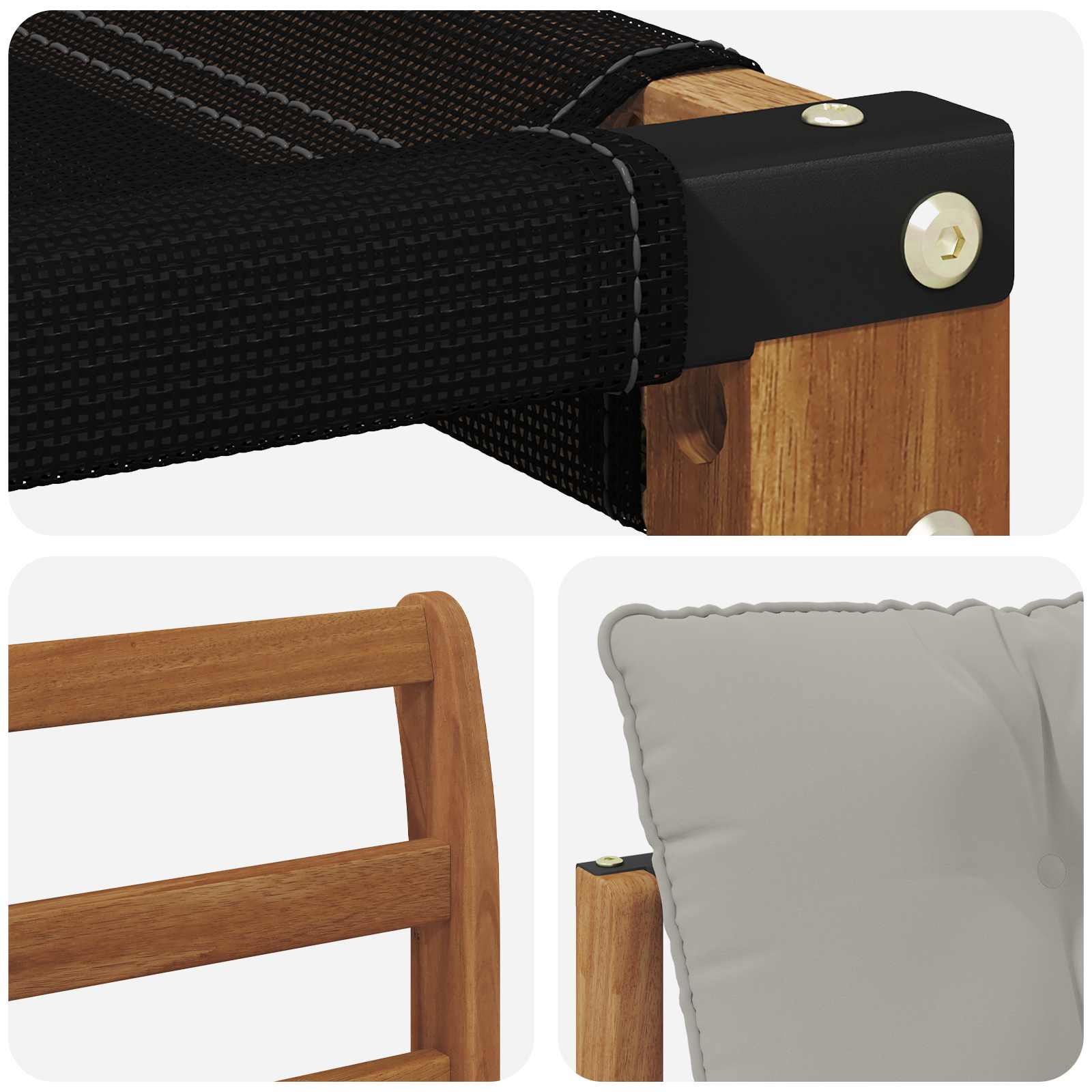 Duurzaam massief acaciahout: De tuinmeubelen set is gemaakt van massief acaciahout en staat bekend om zijn langdurige duurzaamheid en weerstand tegen weersinvloeden. De stevige constructie biedt betrouwbare ondersteuning en blijft stabiel, terwijl de warme natuurlijke kleur mooi staat in elke tuin of op ieder terras.